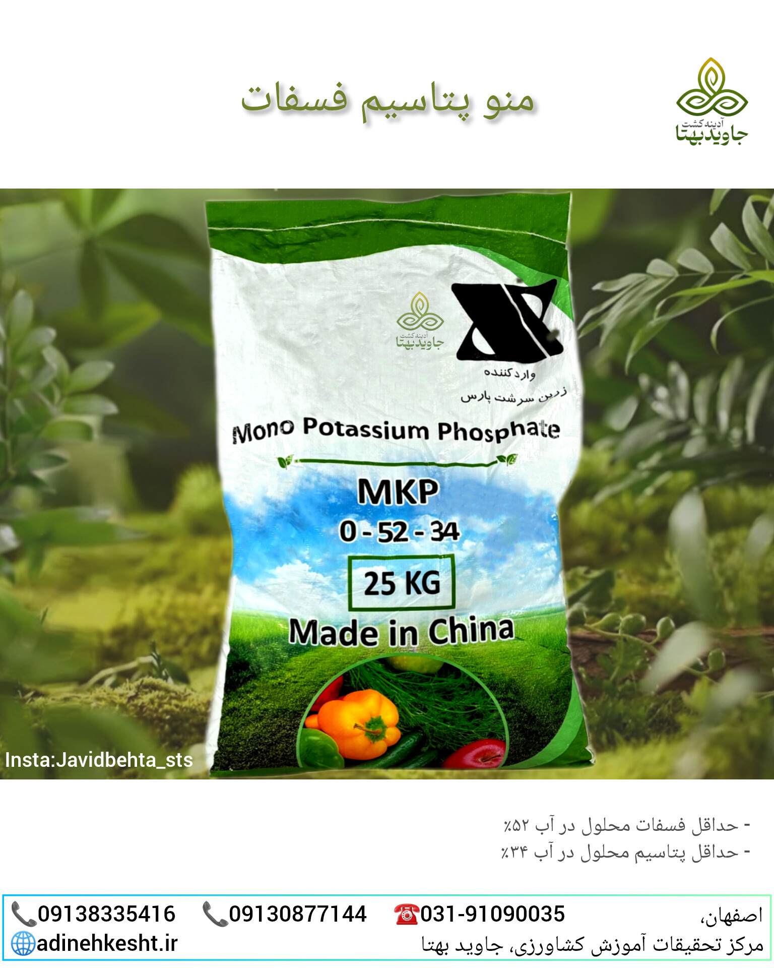 برای ثبت سفارش و دریافت مشاوره رایگان با کارشناسان شرکت آدینه کشت جاوید بهتا تماس بگیرید.